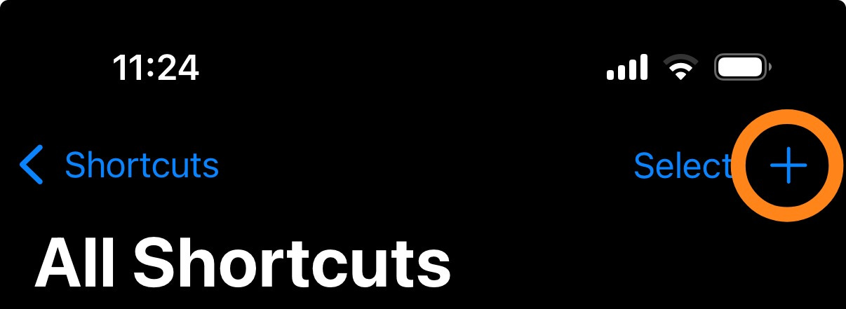 Tap the โ+โ button in the top-right corner to create a new shortcut.